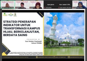 Workshop yang dilaksanakan secara daring melalui Zoom Meeting ini menghadirkan narasumber nasional, Suci Wulan Pawhestri, M.Si. dari UIN Raden Intan Lampung. Beliau juga merupakan pembicara pada The 4th National Sustainability Leader Meeting UI GreenMetric 2024. Acara dimulai pukul 08.00 WIB dan diikuti oleh pimpinan universitas, dosen, dan perwakilan unit kerja di lingkungan kampus.